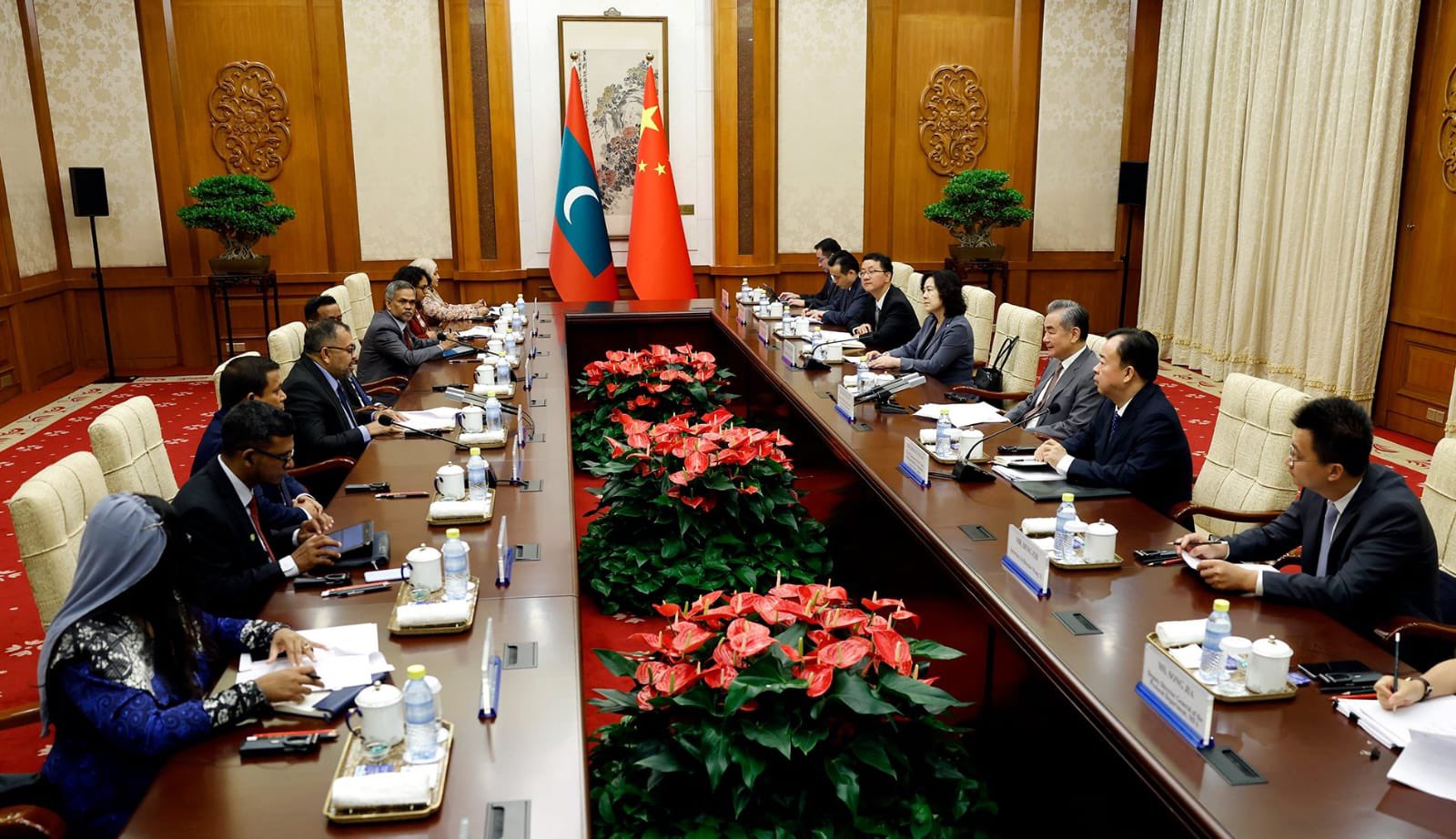The Minister of Foreign Affairs of the Republic of Maldives, Moosa Zameer, and the Member of the Political Bureau of the CPC Central Committee, Director of the Office of the Central Commission for Foreign Affairs, and Minister for Foreign Affairs of the People’s Republic of China, Wang Yi, held extensive bilateral discussions in Beijing today.