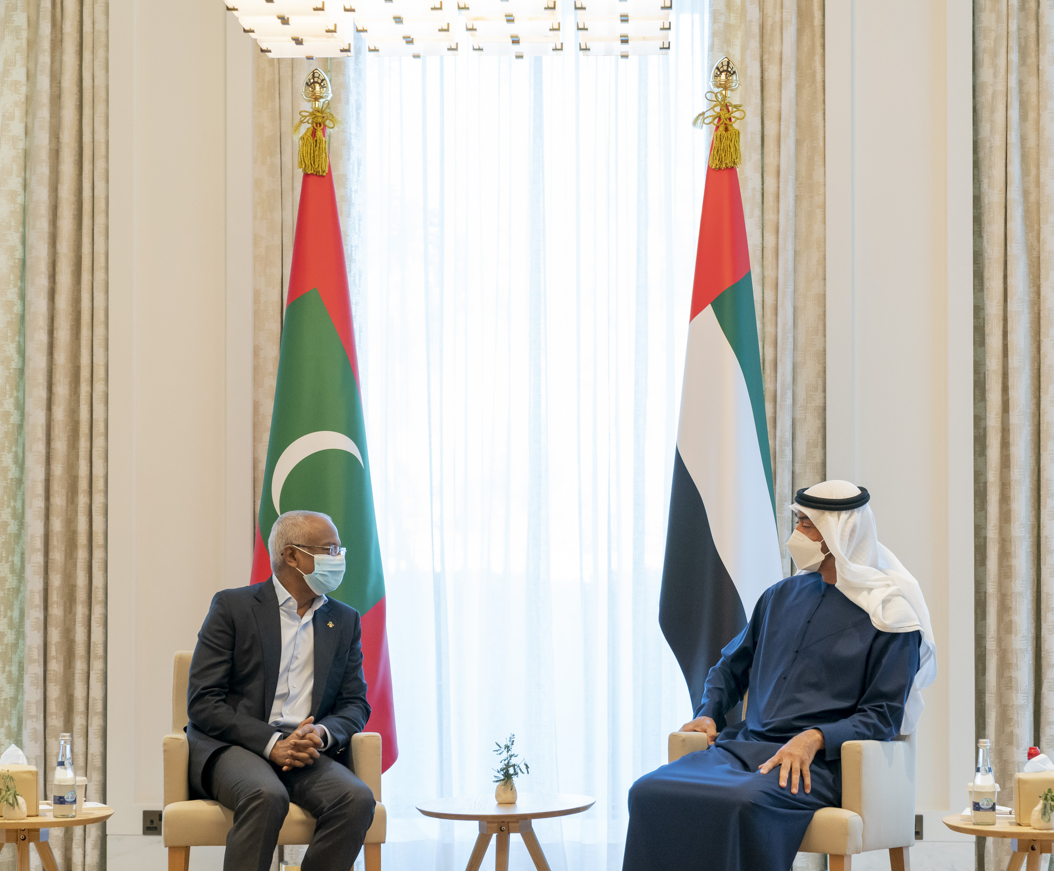 President Ibrahim Mohamed Solih has met with His Highness Sheikh Mohamed bin Zayed Al Nahyan, Crown Prince of Abu Dhabi and Deputy Supreme Commander of the Armed Forces of the United Arab Emirates.
