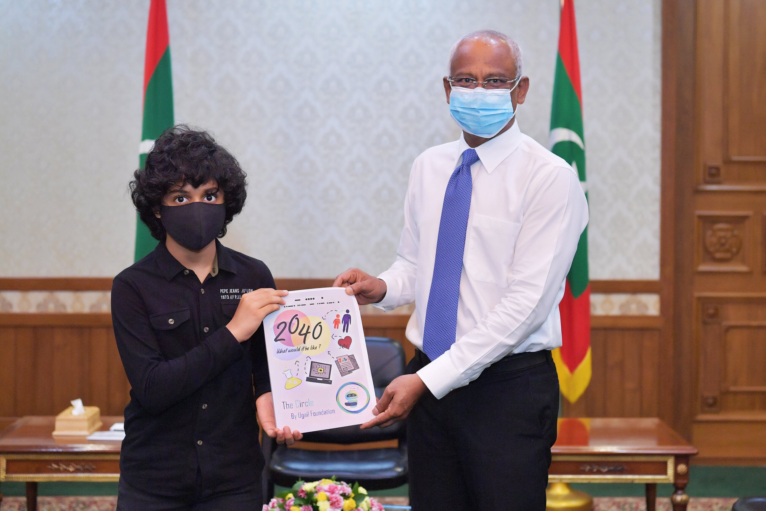 "the Circle" kids present the two books they wrote about 2040 to the President His Excellency Ibrahim Mohamed Solih. The books are available on Amazon. https://t.co/AnTtAZIDYEhttps://t.co/1Pqs8zUZAa@ibusolih @UgailFoundation @hdcmaldives pic.twitter.com/iT7RljgDeP