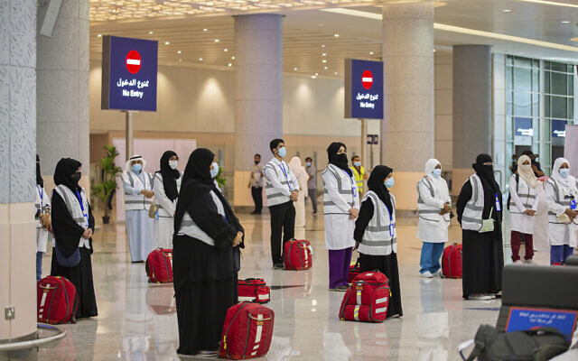 Following the decision to lift the suspension of international flights and to open the land and sea entry points to the Kingdom, a group of pilgrims coming from Indonesia’s capital, Jakarta, arrived at the King Abdul Aziz International Airport on Saturday night.