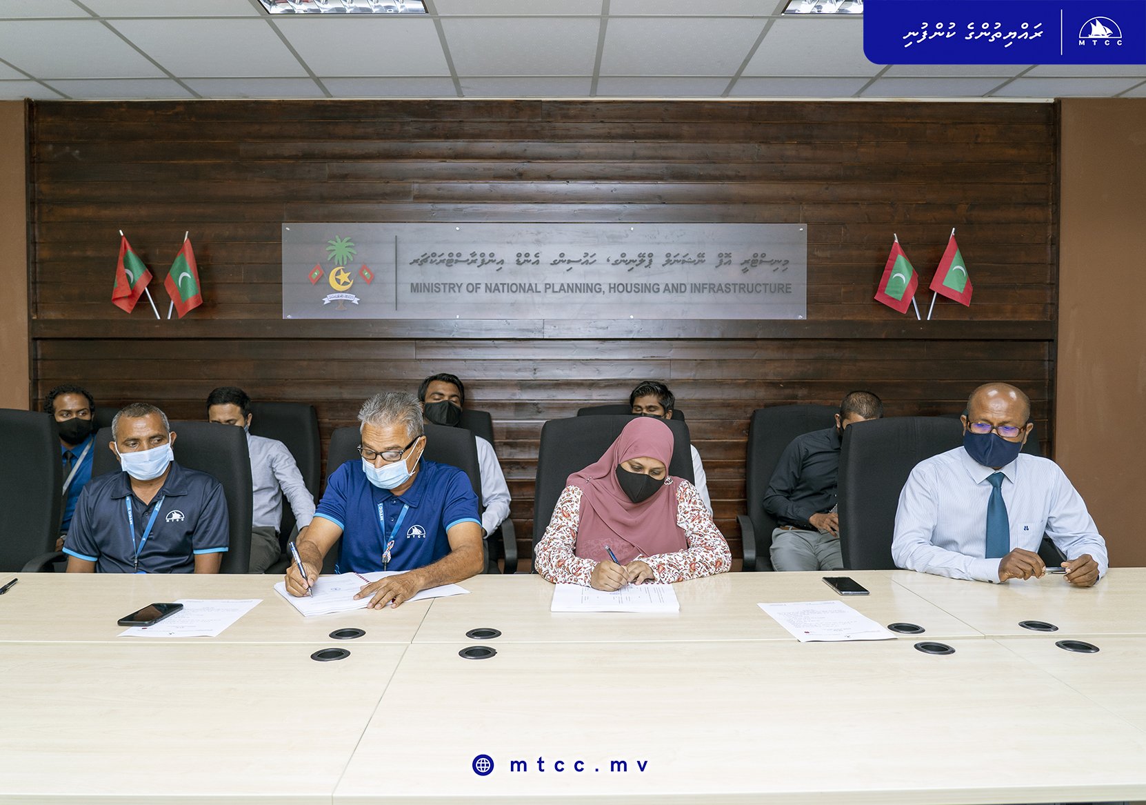 މި މަޝްރޫޢު ޙަވާލުކުރުމަށް މިއަދު މިނިސްޓްރީ އޮފް ނޭޝަނަލް ޕްލޭނިންގ ހައުސިންގް އެންޑް އިންފްރާސްޓްރަކްޗަރ ގައި ބޭއްވި ރަސްމިއްޔާތުގައި، އެމްޓީސީސީގެ ފަރާތުން ސޮއިކުރެއްވީ ޗީފް އޮޕަރޭޓިންގ އޮފިސަރ ޝާހިދު ޙުސައިން މޫސާއެވެ. މިނިސްޓްރީގެ ފަރާތުން ސޮއިކުރެއްވީ ޕަރމަނަންޓް ސެކްރެޓަރީ ޒީނިޔާ އަޙްމަދު ޙަމީދެވެ.