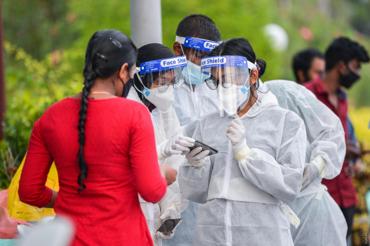 ރައީސް އޮފީހުގެ ތަރުޖަމާނު މުޙައްމަދު މަބްރޫކް އަޒީޒް ވިދާޅުވީ ރާއްޖޭގައި މަސައްކަތްކުރަމުންދާ ސިއްޙީ އެހީތެރިންގެ 55 އިންސައްތަ މީހުން މިހާރު މަސައްކަތްކުރަމުންދަނީ ސީދާ ކޮވިޑަށް ފަރުވާދިނުމުގެ މަސައްކަތުގައިކަމަށެވެ. އަތޮޅުތަކުން ޕޮޒިޓިވްވާ މީހުން އިތުރުވެ، އަތޮޅުތަކުގެ ފެސިލިޓީތަކުން ފަރުވާ ހޯދާ މީހުންވެސް ވަނީ އިތުރުވެފައެވެ.