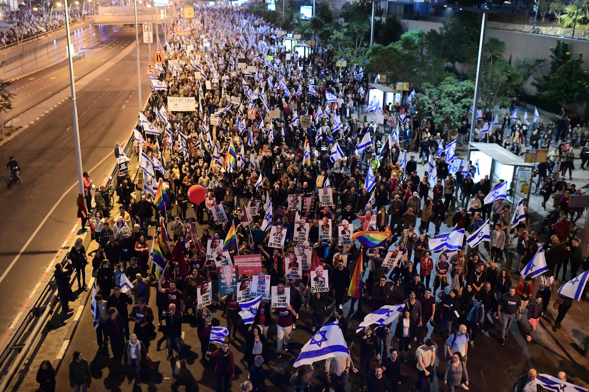 ގާނޫނަކަށް ގެނައި ބަދަލަކާއި ގުޅިގެން އިސްރާއީލުގެ ޓެލް އަވީވްގެ މަގުތަކަށް އަނެއްކާ އެތައް ހާސް ބަޔަކު ނުކުމެ މުޒާހަރާކުރަން ފަށައިފިއެވެ.