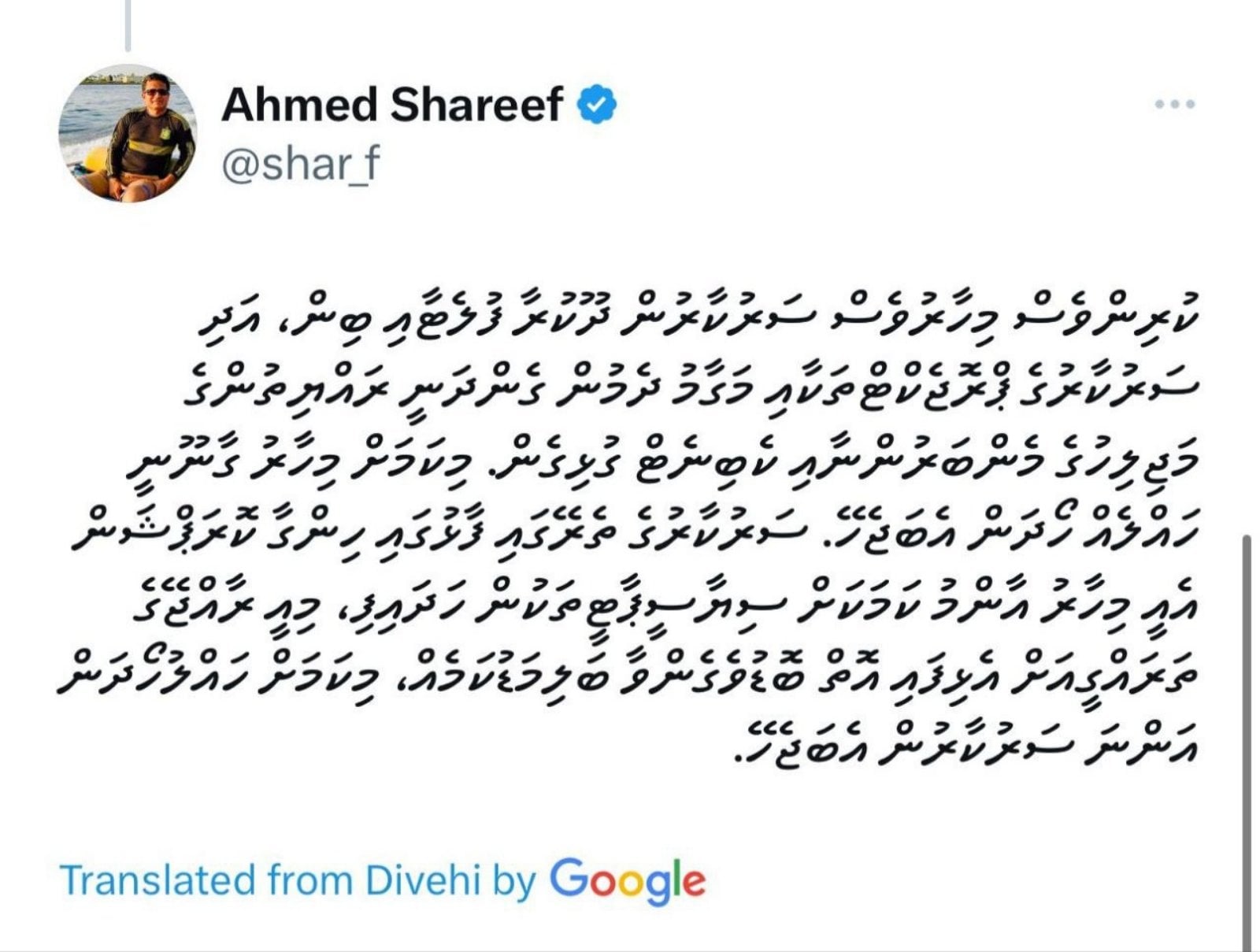 އެގޮތުން ރާއްޖޭގެ ތަރައްޤީއަށް ހުރަސް އެޅިފައިވާ މި "ބަލިމަޑުކަމަށް" ހައްލެއް ގެނެސްދިނުމަށް ޝަރީފު ވަނީ އަންނަން އޮތް ސަރުކާރަށް ގޮވާލައްވާފައެވެ.