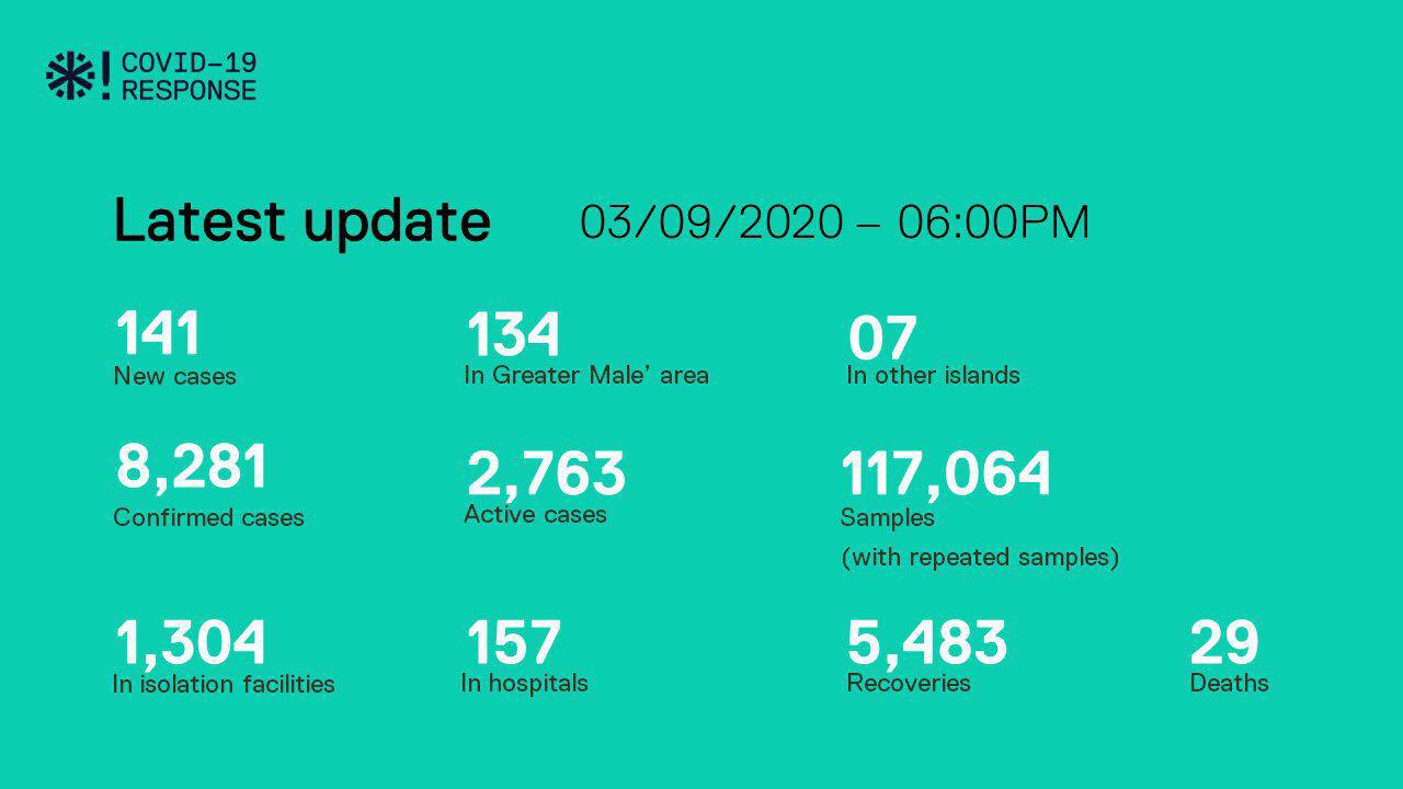 ރާއްޖެއިން ވޭތުވެދިޔަ 24 ގަޑިއިރުގެ ތެރޭގައި ކޯވިޑް-19 އަށް 141 މީހުން ޕޮޒިޓިވްވެ 153 މީހުން ބަލިން ރަނގަޅު ބަލިން ރަނގަޅުވި އަދަދު މިއަދު އިތުރުވެއްޖެއެވެ.