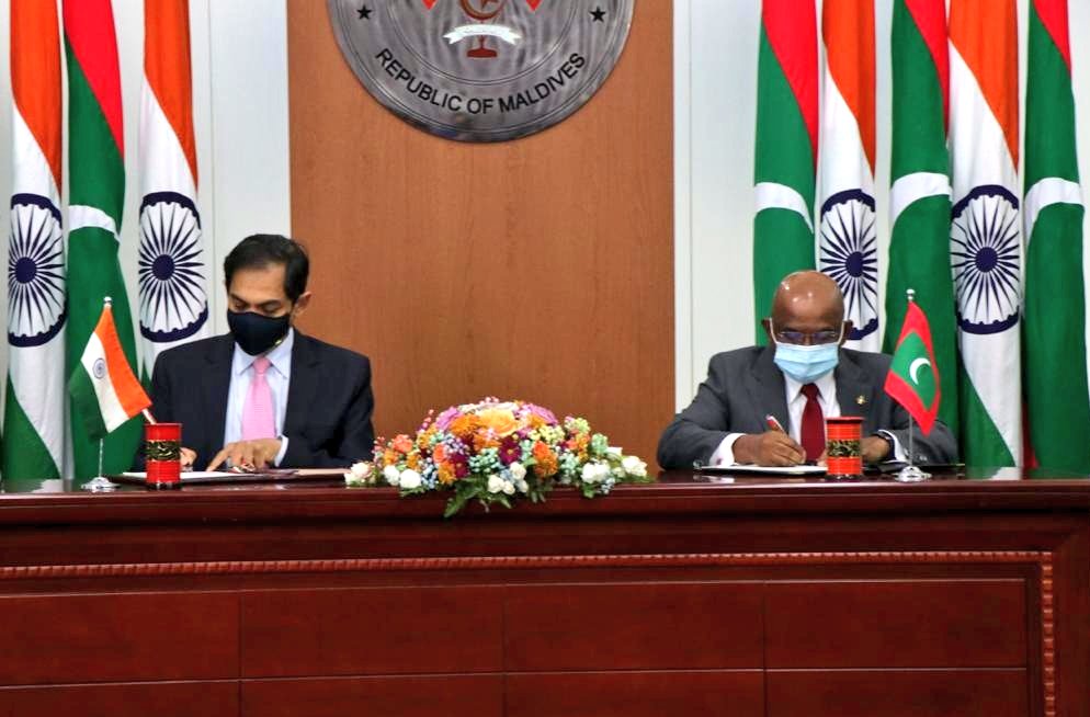 ގްރޭޓަރ މާލެ ކަނެކްޓިވިޓީ ބުރިޖު މަޝްރޫޢަށް އިންޑިއާ ސަރުކާރުން ދޭ 100 މިލިއަން ޑޮލަރުގެ އެހީގެ އެއްބަސްވުމުގައި ސޮއިކޮށްފިއެވެ،
